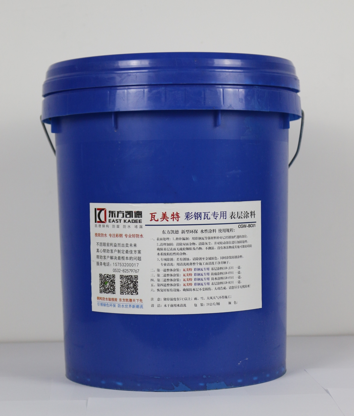 五、第四道整體涂裝: 瓦美特彩鋼瓦專(zhuān)用表層涂料CGW-BC01 一道。